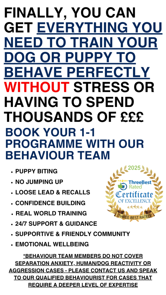 - WEEKS #1-5: Weekly 1 Hour Private Training Sessions With a Dog Training Expert (£834 Value)
